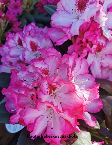 Alppiruusu 'Hachmann's Charmant' on saksalainen alppiruusu-lajike. Kukat ovat upean kaksiväriset, niiden pohjaväri on valkoinen ja terälehtien reunat kauniin kirsikanpunaiset.Kukat ovat kooltaan... Lue lisää
