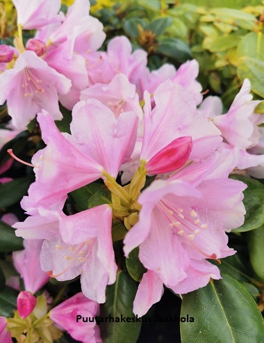 PUUTARHURIN VINKKI: Estä kosteuden haihtumista maasta istuttamalla alppiruusun tyvelle jokin matala aluskasvi tai kata maanpinta kuorikatteella.