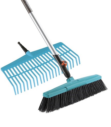 Kätevä setti puutarhan puhtaanapitoon.Setti sisältää Gardena Combisystem-jatkovarren sekä harja- ja haravaosan. Laadukkaassa harjassa on integroitu raaputusreuna, joka helpottaa lian ja märkien lehtien irrottamisen. Harjan työleveys on 45 cm. Lehtiharava on valmistettu korkealaatuisesta muovista ja sen työleveys on 43 cm.
