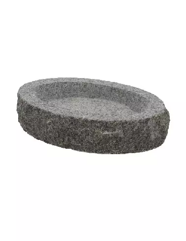 Graniittinen ovaalin muotoinen lintujen juoma-allas. Tuotteen mitat: 20 x 30 x 6,4 cm.