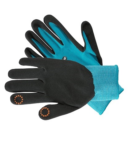 GARDENA-istutuskäsineet (koko XL) ovat erinomaiset kukkien istuttamiseen, maan möyhentämiseen tai rikkaruohojen kitkemiseen. Multaa käsiteltäessä joutuu usein tekemisiin kosteuden kanssa. Siksi käsineiden nitriilipinnoite on erityisen käytännöllinen, sillä se suojaa käsiäsi kosteudelta. Nämä XL-koon isoon käteen tarkoitetut työkäsineet istuvat käteen erinomaisesti. Käsineiden ranneosa ja kämmenselkä on valmistettu joustavasta materiaalista, joten istuttaminen ja kaivaminen on miellyttävää. Lisäksi istutuskäsineet ovat hengittävät, joten kädet eivät hikoile vaativimmissakaan puutarhatöissä. Työskentelyn aikana voi herätä kysymyksiä, joihin tarvitset kenties älypuhelintasi. Peukalon ja etusormen kätevä Mobile Touch -pinta mahdollistaakin älypuhelimen kosketusnäytön käytön käsineet kädessä. Nämä hyvin käteen istuvat puutarhakäsineet on Öko-Tex® 100 -sertifioitu, joten niissä ei ole käytetty lainkaan haitallisia aineita.