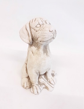 Valkobetonista valmistettu Suomen säitä kestävä istuva koirapatsas. Korkeus: 23 cm Leveys: 11 cm Paino: 3,5 kg