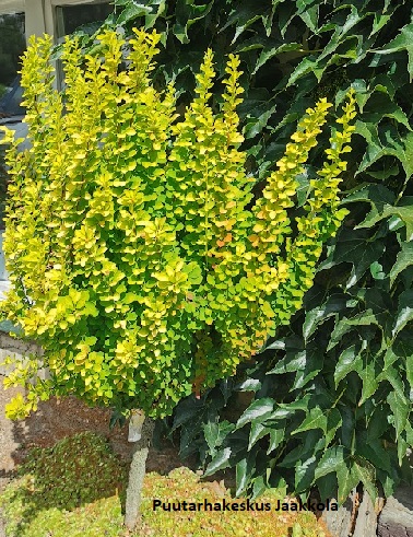 Japaninhappomarja ' Maria' näyttävänä pikkupuuna.Sen kullankeltainen lehdistö saa syksyllä punertavan vivahteen.Lehdet ovat kauniin pyöreät. Oksat ovat pystykasvuiset ja piikikkäät.Kaunis ja... Lue lisää