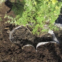 Koko istutuskuoppa/-alue vuorataan ensin juuriestematolla. Reunat on syytä tulla noin 5 cm. yli reunojen. Paras lopputulos saavutetaan kun käytetään yhtenäistä palaa.