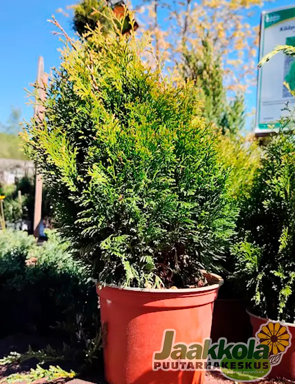 PUUTARHURIN VINKKI: Aurinkoisella kasvupaikalla kasvualustan tulee olla kosteutta pidättävä.Varjostus kevätauringolta tarpeen varsinkin nuorilla taimilla.Tuijat kestävät hyvin leikkausta.