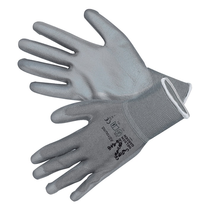 Kulutusta kestävä käsine. Hyvä istuvuus, monikäyttöinen. Polyuretaanilla vahvistettua polyesteriä. Pestävä. Väri: harmaa Pakkauskoko: 6 kpl