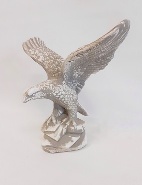 Valkobetonista valmistettu Suomen säitä kestävä kotkapatsas. Korkeus: 33 cm Siipiväli: 35 cm Jalusta: 14 cm x 10 cm Paino: 4,2 kg