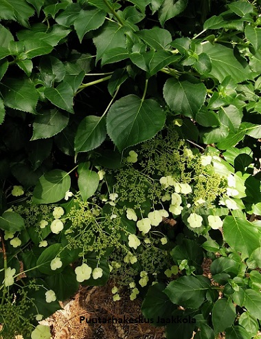 Köynnöshortensi a on upea valkokukkainen köynnös katveiseen paikkaan. Lehdet ovat kauniin pyöreät ja kiiltäväpintaiset, köynnöksen varret ovat jäykät. Kasvu on aluksi hidasta, ja kukintaa... Lue lisää
