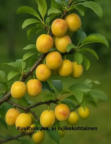 PUUTARHURIN VINKKI: Luumupuuta leikataan tarvittaessa syksyllä sadonkorjuun jälkeen, kevätleikkausta ei suositellla runsaan mahlavuodon vuoksi. Puun tuenta istutusvaiheessa nopeuttaa juurtumista. Muista myös jänis- ja myyräsuojaus verkolla ja rungonsuojalla.