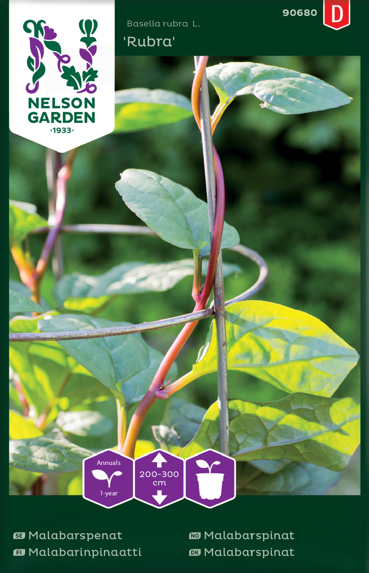 Köynnöstävä lehtivihanneslajike, jonka punainen varsi ja vihreät lehdet ovat koristeelliset. Korjaa satoa vähitellen tai korjaa vihannes kokonaisena, noin 1m mittaisena. Jätä vartta maahan n.20cm, jolloin kasvu jatkuu. Sekä varren että lehdet voi käyttää ruoanlaitossa pinaatin tavoin. Sopii myös gratiiniin ja lehdet maustavat pataruoan. Itäminen hidasta.