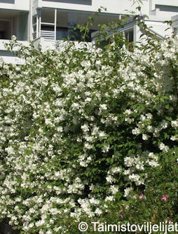 Pihajasmike on voimakkaasti tuoksuva, tuuhea ja runsaskukkainen yksittäis-, suoja- ja aidannepensas. Se kukkii kesä-heinäkuun vaihteessa ihanasti tuoksuvin yksinkertaisin kermanvalkoisin kukin.... Lue lisää