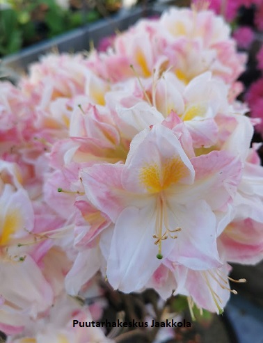 Puistoatsalea 'Satomi' on todella hempeän kaunis kukkiessaan hennon vaaleanpunaisin kukin. Kukissa on keltainen nielu ja tummemman vaaleanpunainen raita.Kukat sijaitsevat suurissa kukinnoissa ja ne puhkeavat samaan aikaan touko-kesäkuun vaihteessa kasvunsa aloittavien lehtien kanssa. Lehdistö on kauniin vihreä. Syksyllä pensasta koristaa upea punainen syysväri.Knap Hill-ryhmään kuuluva.