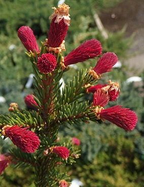 Purppurapallokuusi 'Punahilkka' on kotimainen erikoisuus! Se on vuodelta 1989 ja on tuulenpesä- ja purppurakuusen risteymä. Nimensä mukaisesti sen vuosikasvut ovat keväisin loistavan punaiset jotka  kesän edetessä vihertyvät. Kasvutapa on tiheä ja kartiomainen. Hidaskasvuisena ja matalana se sopii pienellekin pihalle.