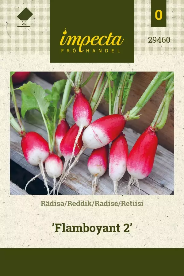 Aikainen ja nopeakasvuinen lajike jolla rapeat ja maukkaat valkokärkiset ruusunpunaiset retiisit.Avomaalle ja penkkiin. Voidaan kasvattaa myös kasvihuoneessa tai penkissä kevättalvella jolloin saadaan aikainen kevätsato.