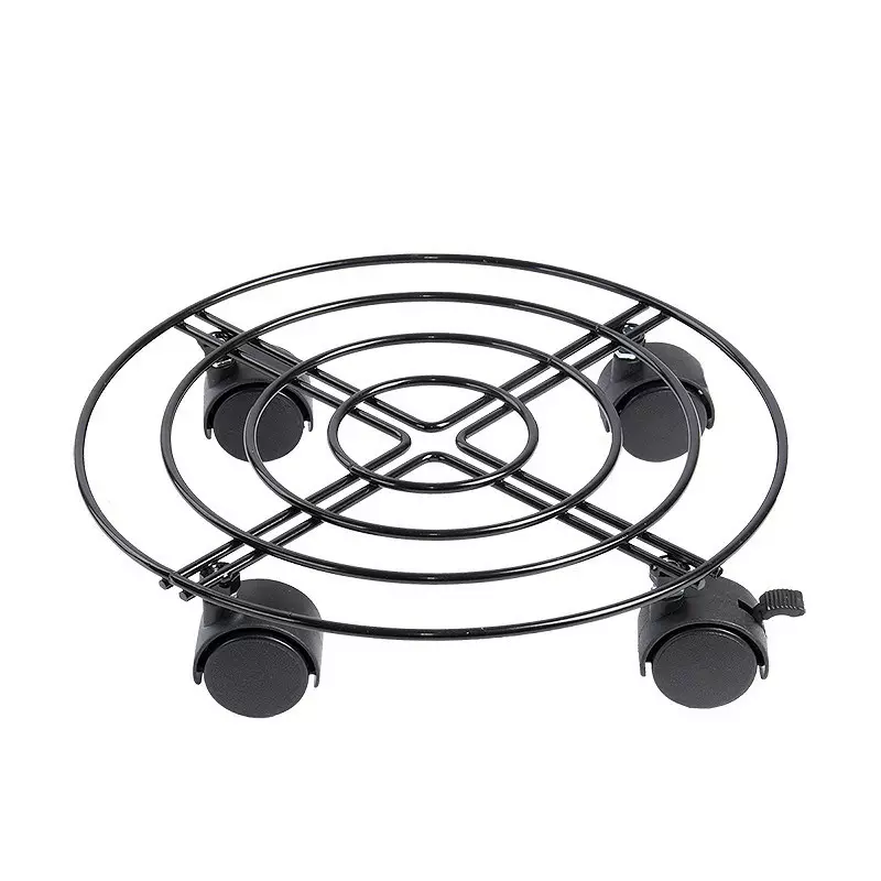 Tukeva metallinen ruukunalusta pyörillä helpottamaan isojen ja painavien ruukkukasvien siirtoa. Halkaisija: 28 cm. Väri: musta Maksimi kuormitus: 60 kg