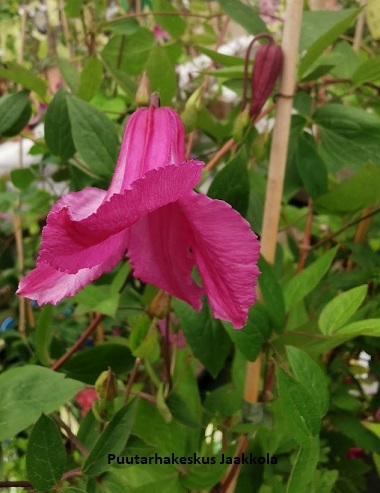 PUUTARHURIN VINKKI: Kellokärhöt ovat perennamaisia köynnöksiä, jotka eivät kierry tukeen. Istutus n. 15 cm entistä kasvusyvyyttä syvempään. Ne kukkivat uusilla versoilla. Alasleikataan vuosittain keväällä n. 20 cm korkeudelta maanpinnasta. Ne sopivat mainiosti esimerkiksi suikertamaan perennapenkkiin tai pensaiden alle.