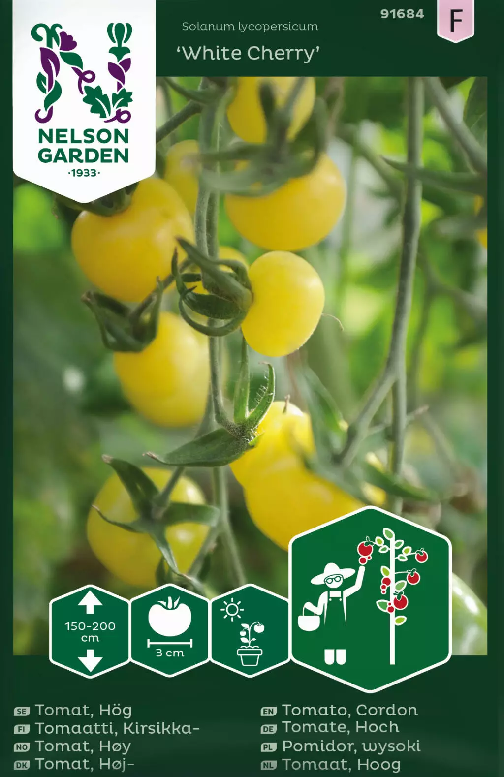 Satoisa kirsikkatomaatti jonka hedelmä on kypsymättömänä vihreä ja muuttuu vähitellen norsunluunkeltaiseksi kypsyessään. Toisinaan tomaattiin tulee myös vaaleanpunaisia vivahteita. Hedelmälihan maussa on sekä makeutta että happamuutta.Kasvata 'White Cherry' -tomaatteja suojaisassa paikassa avomaalla/ulkona. Lajiketta voi viljellä myös kasvihuoneessa. Istuta se hyvin lannoitettuun maahan, kastele ja lannoita säännöllisesti.