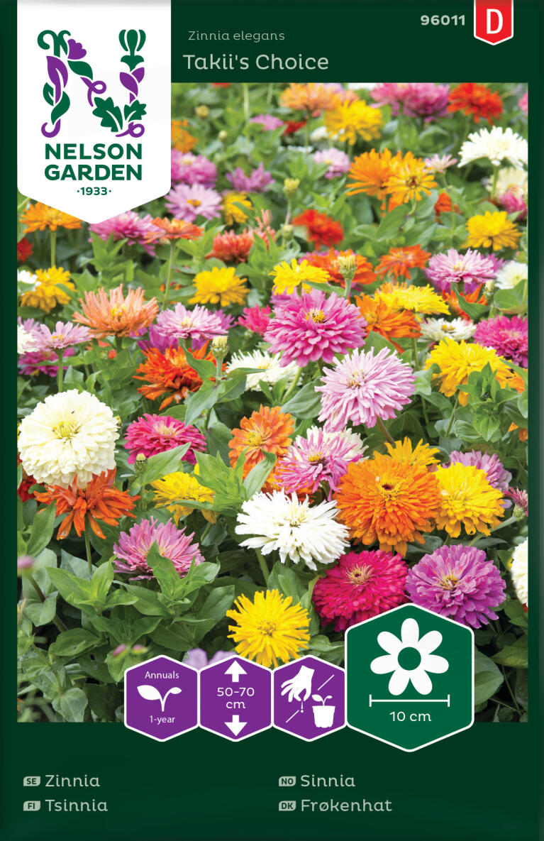 Suuret ja kauniin muotoiset tsinniat värikkäänä seoksena. Upea lisä kukkapenkkiin, erinomainen yhteisistutuksiin ja kestävä maljakossa. Helppo viljellä, rehevä. Kukkii pitkään. Viihtyy runsasravinteisessa ja kuohkeassa kasvumaassa. Kastele kuivuuden vallitessa.