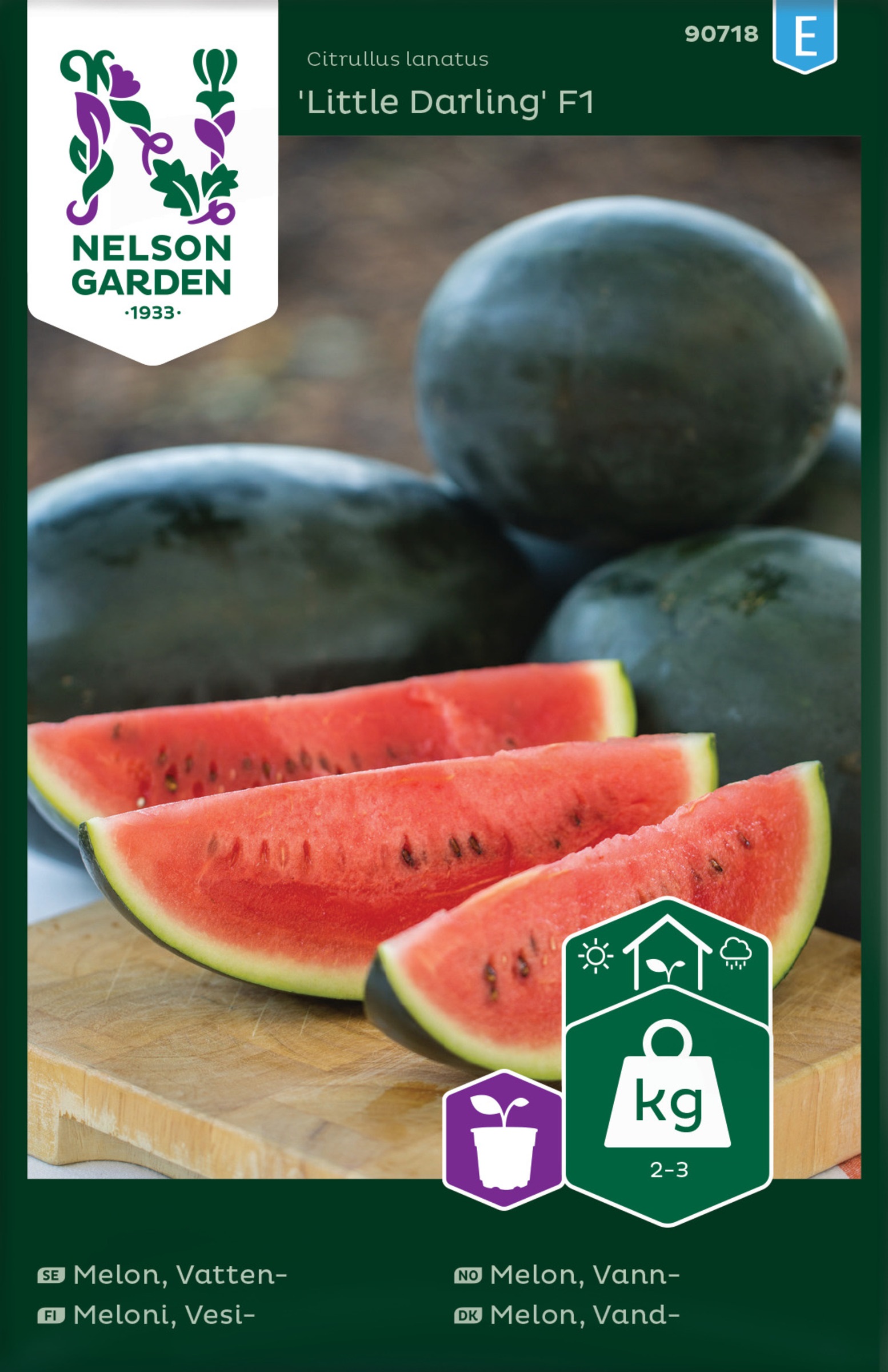 Hyvin varhainen, soikeahko vesimeloni, jonka hedelmäliha on punainen ja makea. Kasvatetaan kasvihuoneessa tai penkissä. Viihtyy runsasravinteisessa ja kuohkeassa maassa. Ei kestä kuivuutta. Auta pölytyksessä: Ota siitepölyä hedekukasta pieneen pensseliin ja sivele emikukan sisäpinnalle. Jätä ainoastaan pari hedelmää/taimi.